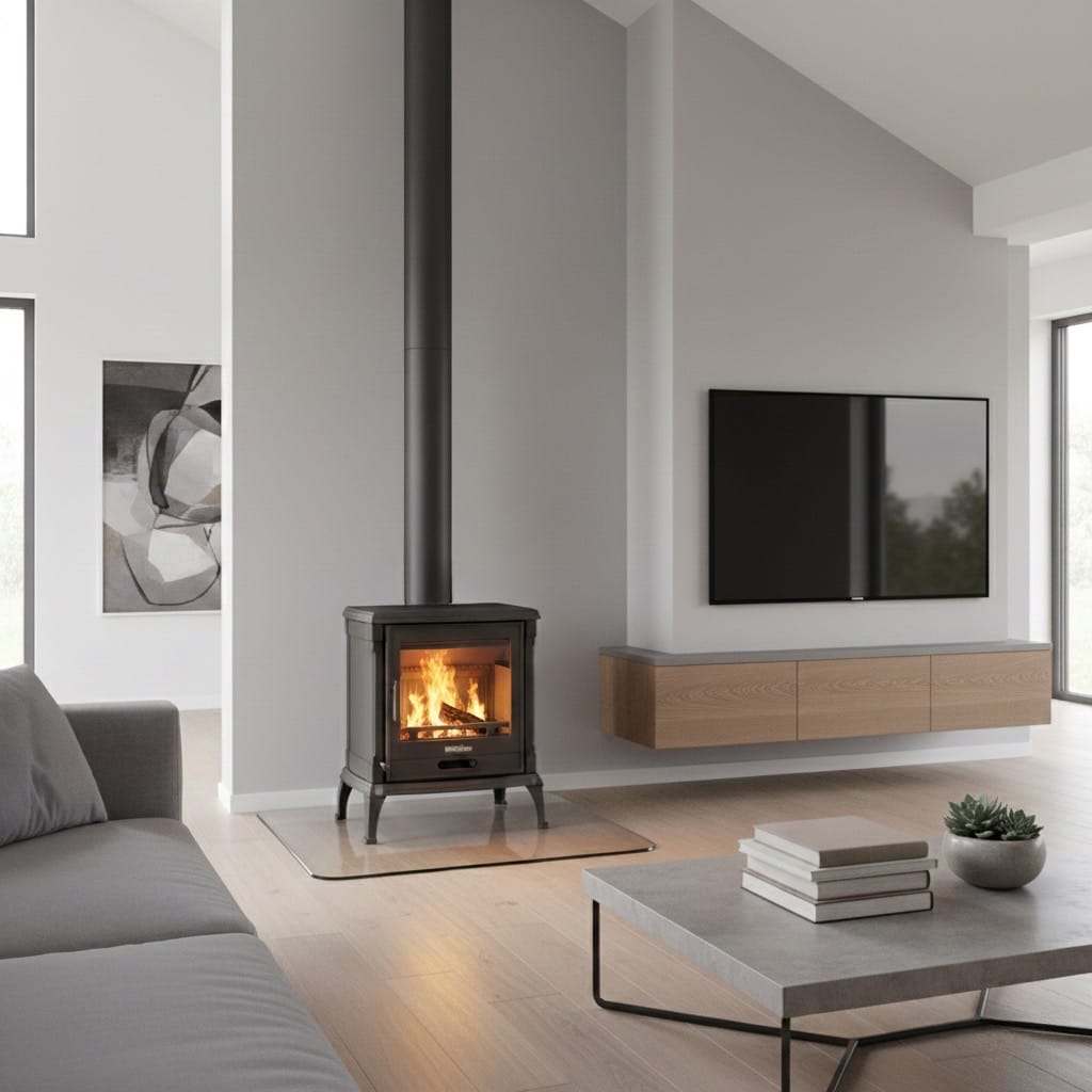 NORDflam IBERIA This is a large NORDflam fireplace stove. Iberia has an adjustable tertiary air supply system to the combustion chamber, which flows into the firebox through inlets located on the rear wall of the chamber and burns up the wood gas released during the combustion process.